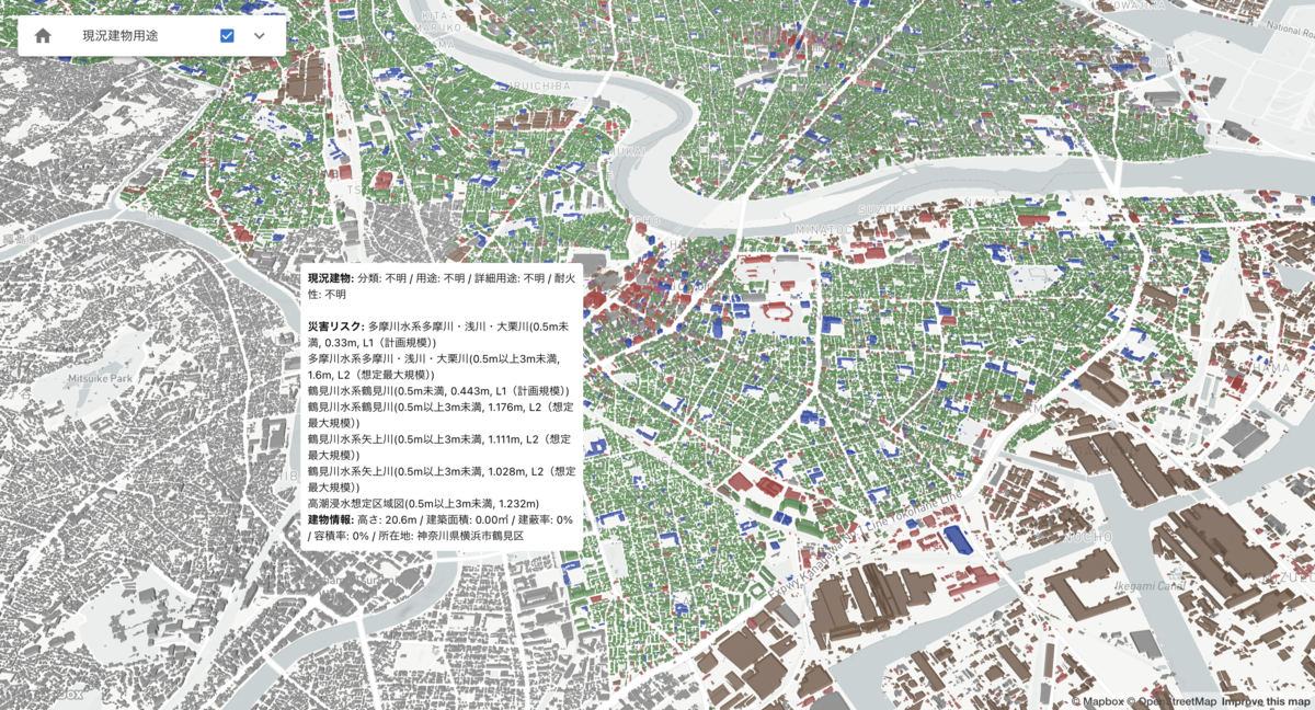 - 横浜市は、2023年版で、建物のプロパティには用途が記述されていないので、デフォルトで全て灰色で描画します。